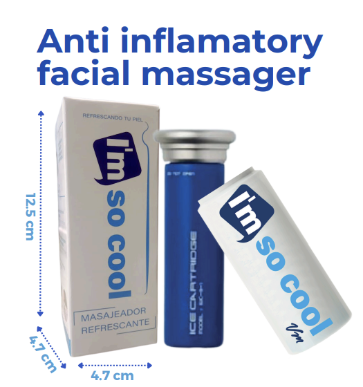The new concept of refreshing massager with frost cartridge. I’M so cool, helps you keep your skin cool, performing a cold massage, the best way to calm the skin. What is ¿I’M SO COOL? Eliminates inflammation, contracts skin and pores, and relieves redness.